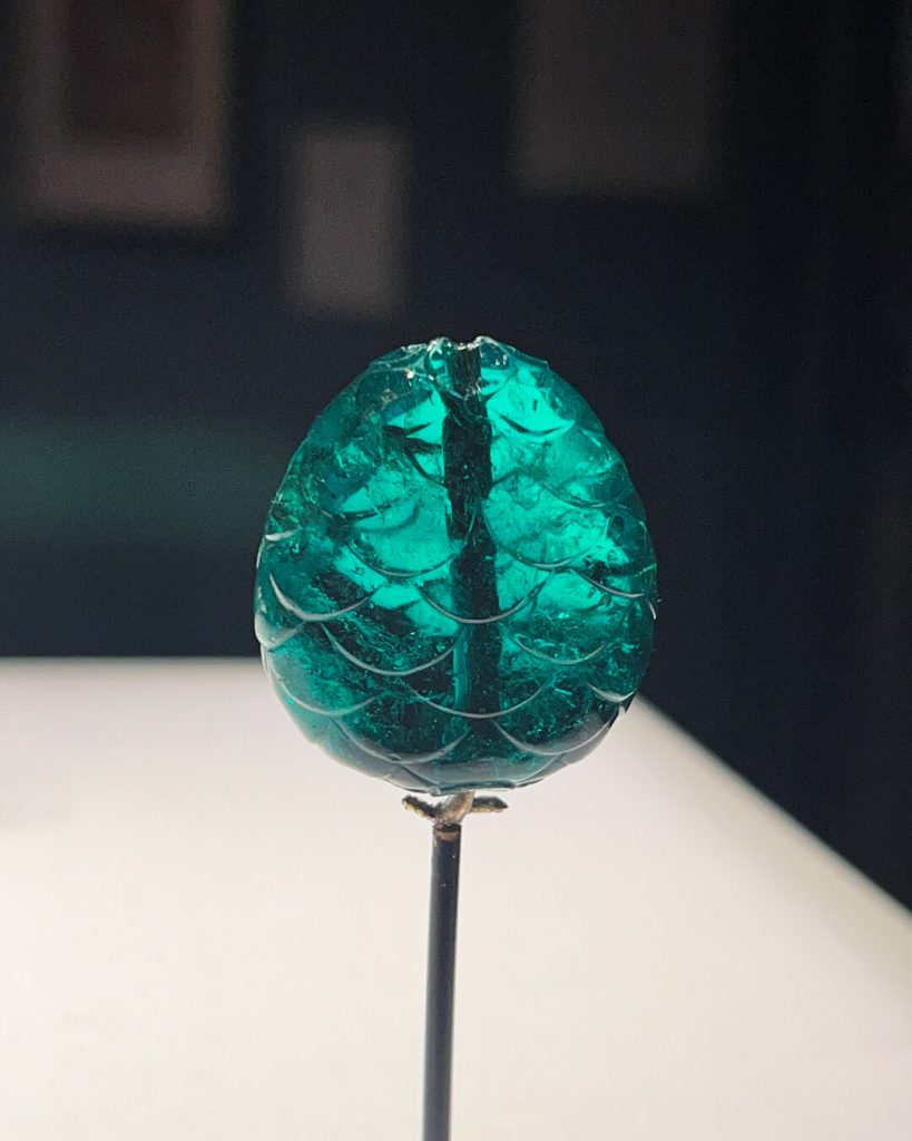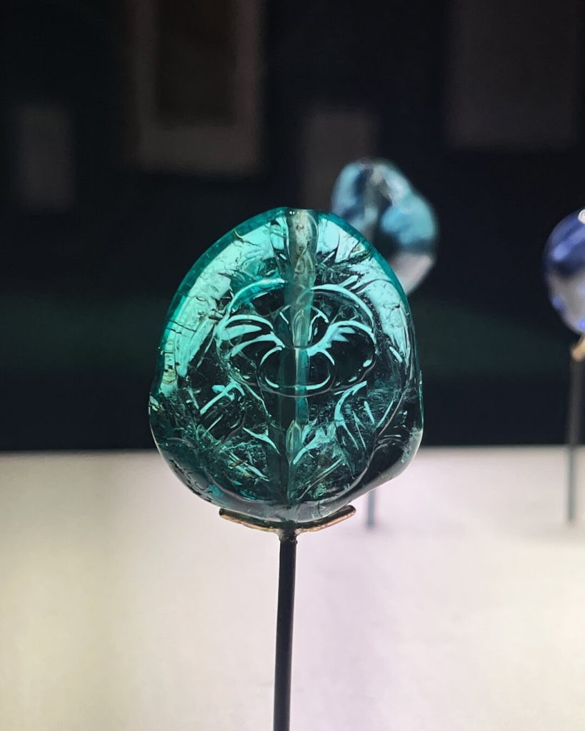 Spinel is one of my favourite gemstones, admired for its high lustre, brilliance, and stunning range of colours. I often incorporate spinels into my jewellery designs, so I was thrilled to see an exquisite example of this gem at the V&A. Often overlooked and historically mistaken for rubies, spinel has a fascinating history – perhaps most famously in the case of the Timur Ruby in the British Royal Collection, which was reclassified as a spinel in 1851!