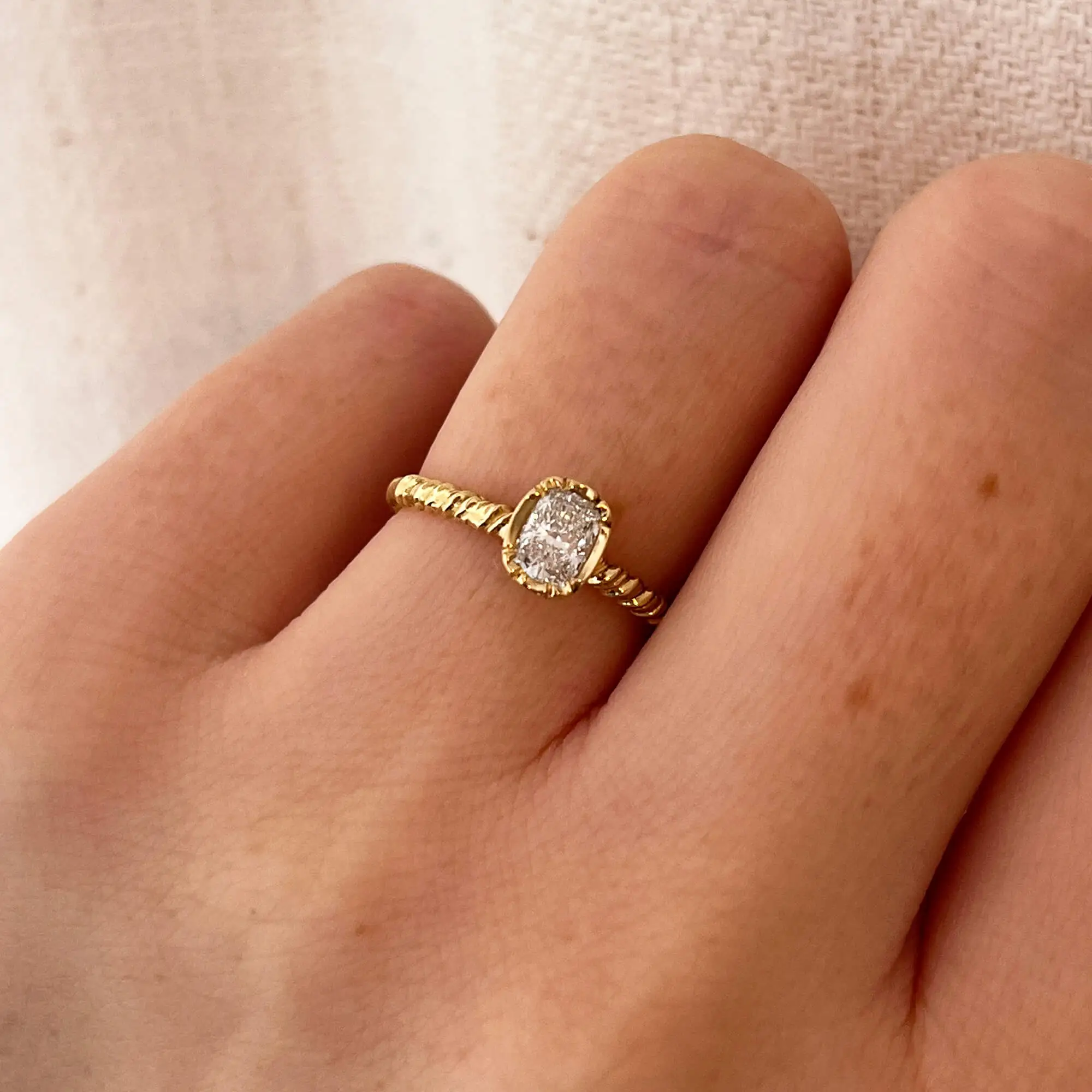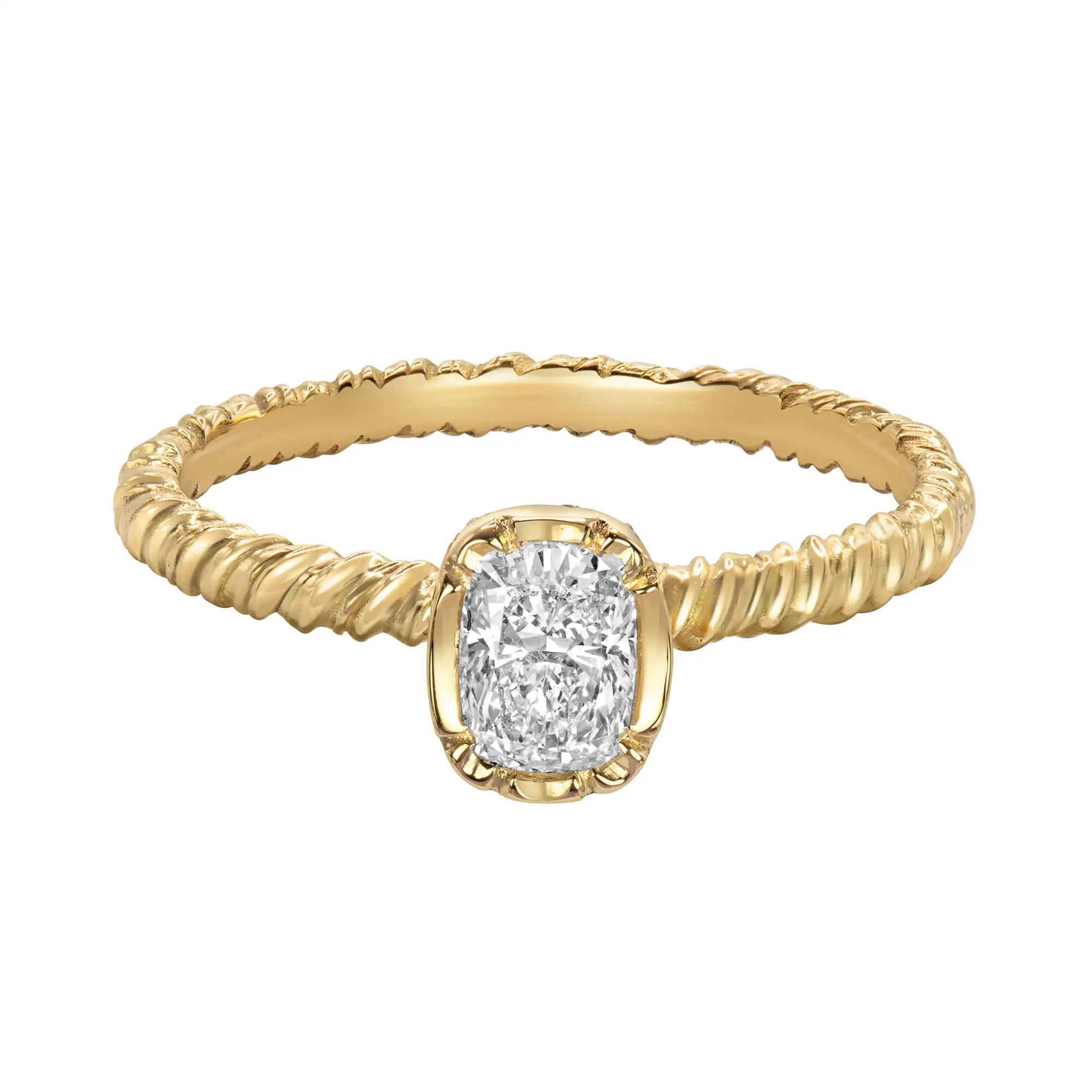 The band features an organic, irregular twist, crafted from two intertwined strands of gold to symbolise unity, strength, partnership, and enduring love.